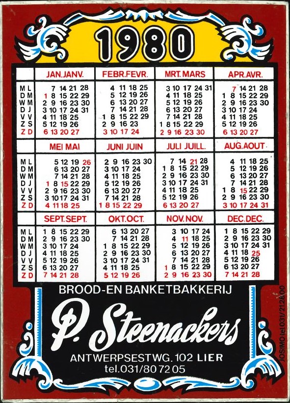 Brood- en banketbakkerij P. Steenackers / Kalender