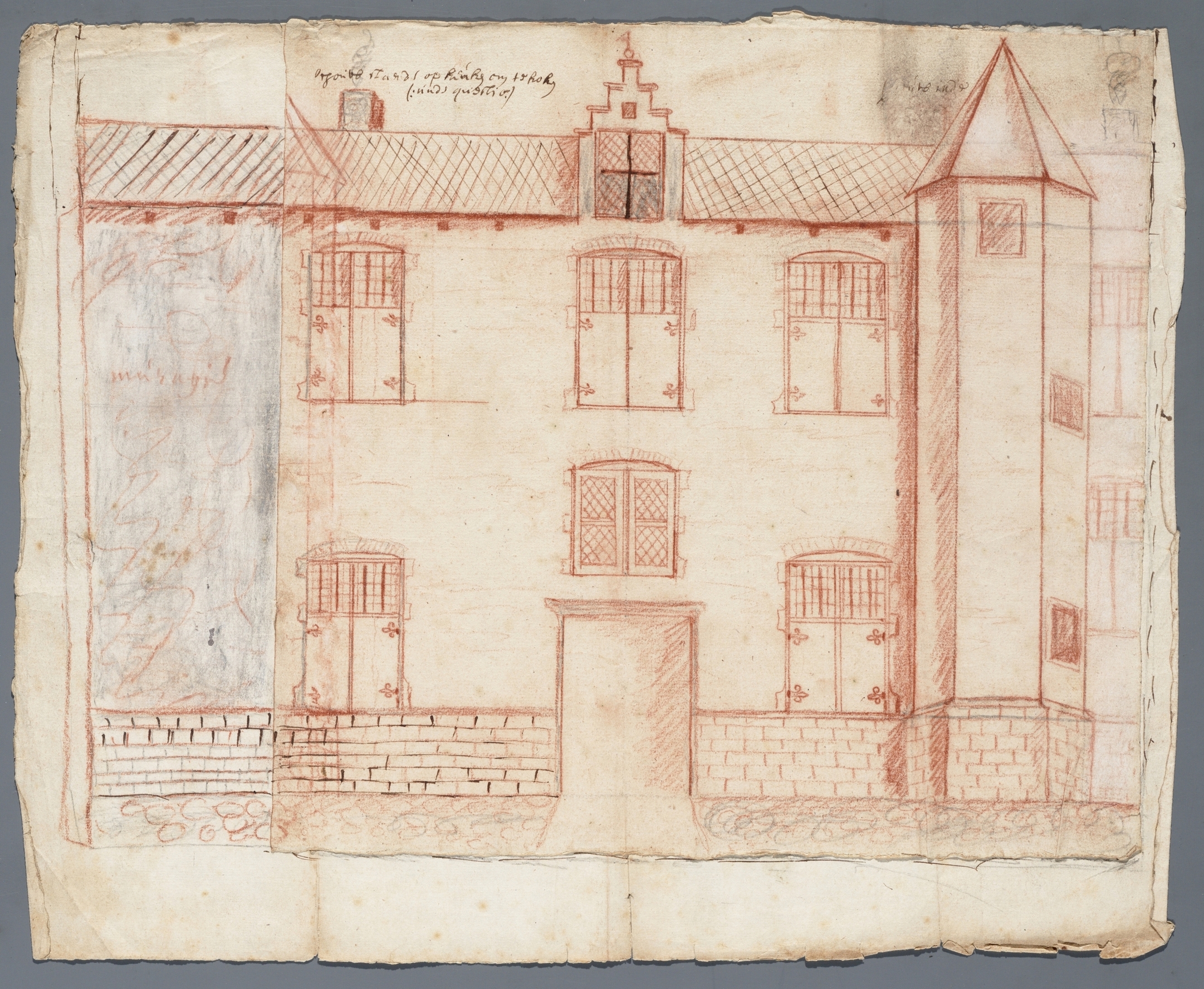 Tekening: Gevel van een gebouw (mogelijk de H. Geesttafel?)