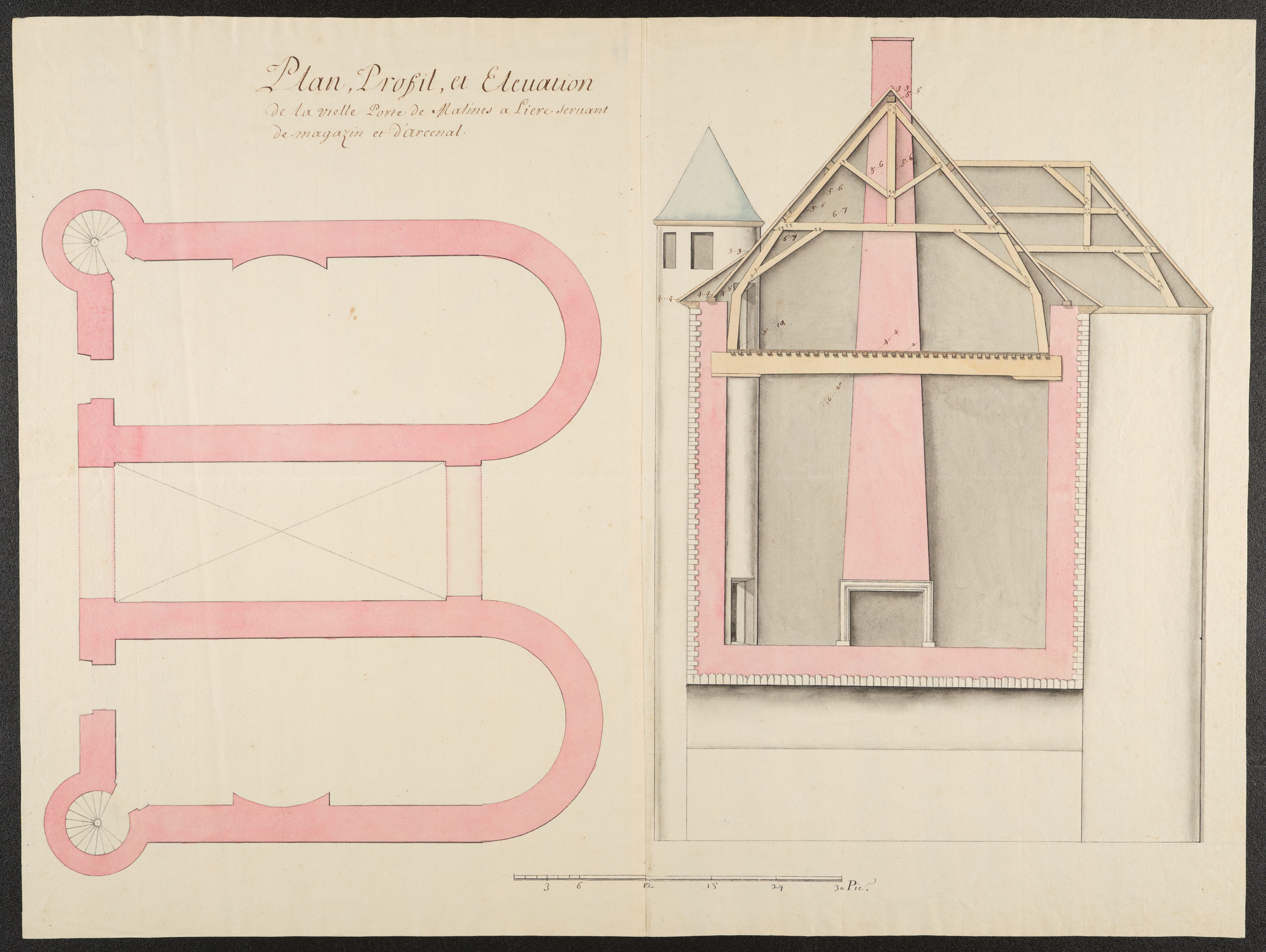 Tekening van de verdwenen Mechelse Binnenpoort